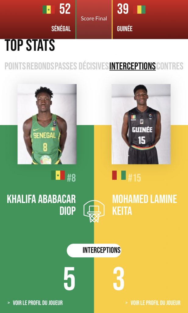 Afrobasket U18 – Les statistiques de la demi-finale Sénégal vs Guinée (52-39)