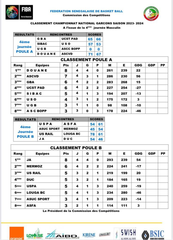 La 4e journée de la phase aller du championnat national de première division s’est clôturée sur une belle note dimanche soir avec le beau derby Douane- Ville de Dakar. Au terme d’un beau duel, l’AS Douane a eu le dernier mot (71-67) grâce à l’international Nigérien Abdoulaye Harouna top scoreur du match avec 21 points (voir ici).
