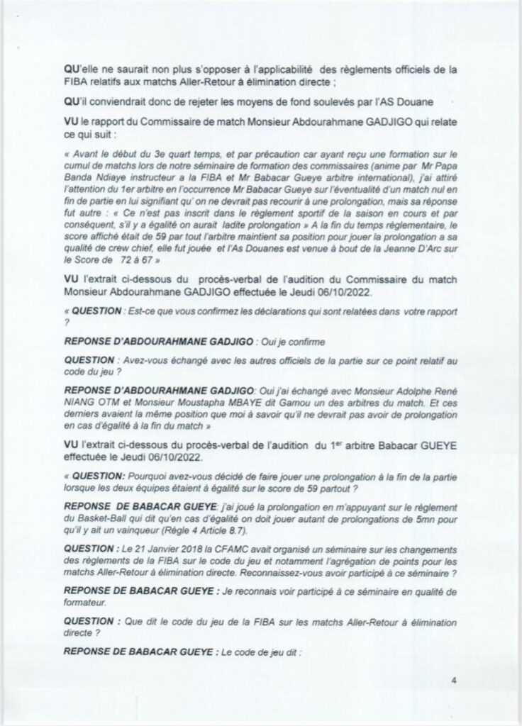 Le Bureau fédéral qui a reçu le recours de la J.A après la rencontre vient de statuer et a tout bonnement décidé d’appliquer le règlement et d’envoyer la Jeanne d’Arc en Finale. Les Bleus et Blancs peuvent donc se préparer en conséquence. Ils feront face au Dakar Université Club, le 23 octobre 2022.