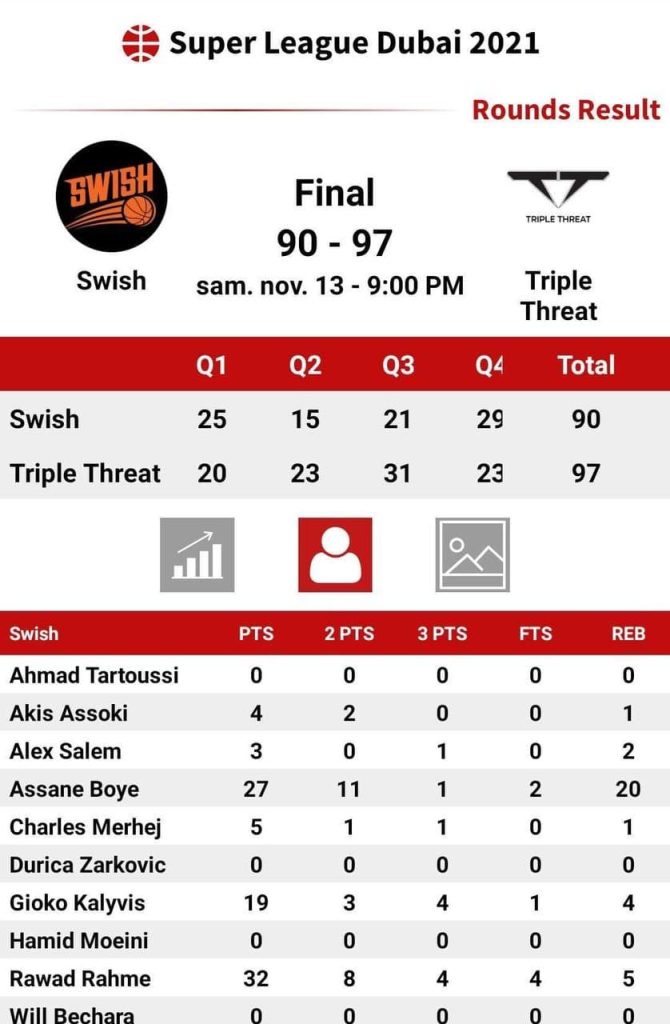 Ce week-end écoulé, Assane Boye s’est encore offert une performance gigantesque, en Super League de Dubaï. L’ailier sénégalais qui évolue à Swish Basket a survolé la rencontre face au Triple Threat Basket. Malgré un revers sur le fil (97-90), il termine encore en MVP grâce à ses 27 points, 20 rebonds dont 17 défensifs, 1 contre et 1 interception. Assane Boye continue ainsi de s’imposer dans cette Ligue dubaïote.